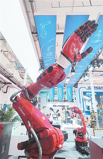 日前,正在东安汽车动力股份无限公司出产车间,工业机械人正在出产功课。记者 王 松摄。
