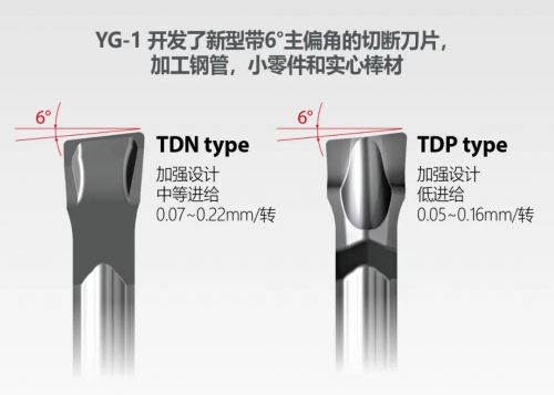 YG-1新型双面6°从偏角堵截刀片是加工钢,不锈钢和铸铁的最佳选择。通过去除毛刺和成品部件上的飞边,提高工件完成质量。