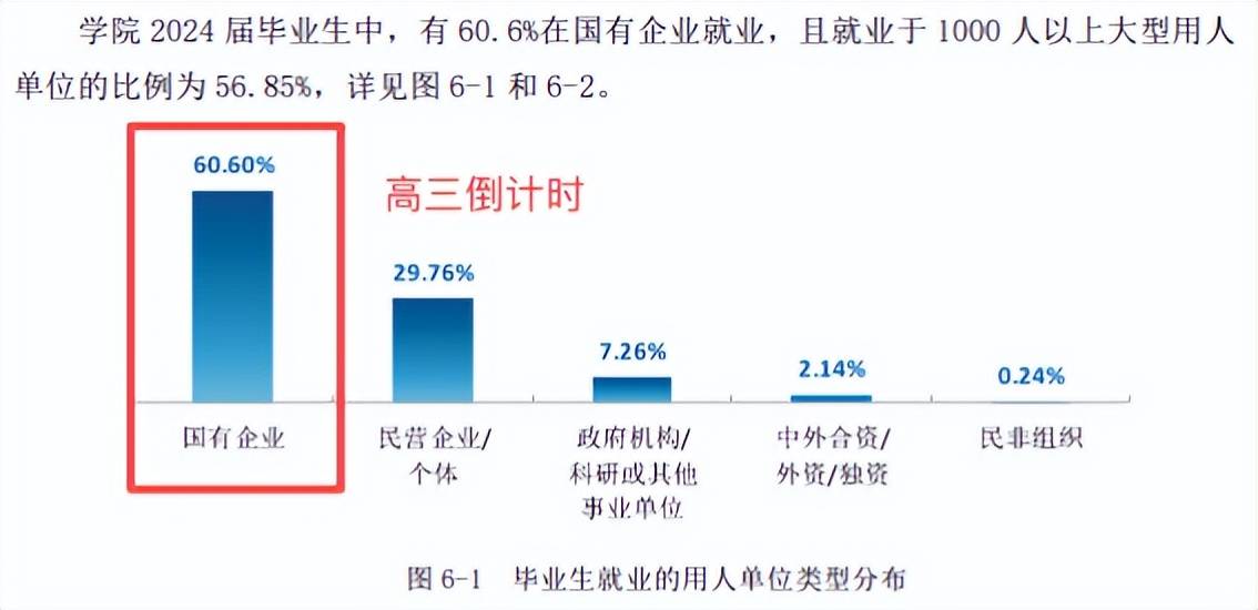 学校发布的最新就业数据显示:本科结业生有40%以上都能进入国有企业就业!20%摆布进入事业单元,全体铁饭碗就业率跨越60%!